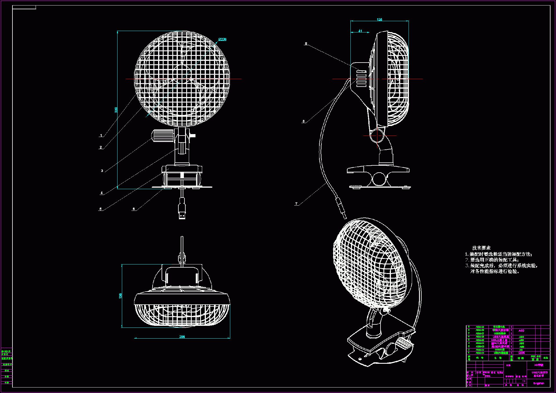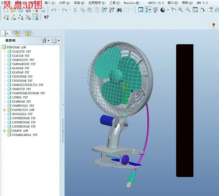 科技的迅猛发展使USB风扇的发展也进入了一个全新的发展阶段。从休闲日用到商务办公;不管是市井平民还是成功人士,在大街,在学校,在医院,在楼层等USB风扇无不闪现着它的倩影。经济的全球化,人与人之间联系的密切化,追求的多样化也必将促使USB风扇的风格,款式造型的多彩化发展。Pro/E,UG等软件的广泛使用使USB风扇的造型不断向高精度方向发展,同时也对设计设计人员提出了更高的要求。 本设计是型号为USB风扇的粗略造型设计。其设计内容大致包括:USB风扇材料的选用及分析,USB风扇结部件的分析,三维造型图的绘制,二维工程图的转换等。由于所学知识浅薄,本设计只是粗略造型,旨在了解设计流程,掌握简单的造型方法,熟练运用和深化所学知识(Pro/E造型的实践运用)。