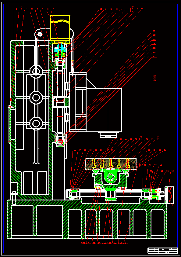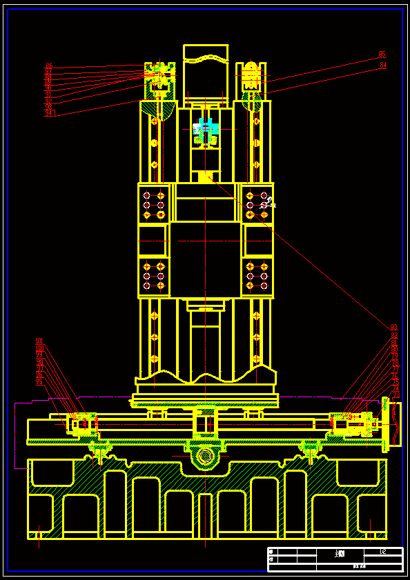 本次设计是完成一台立式数控铣床机械部分的设计。在设计中主要对铣床总体结构进行布局,伺服系统和主轴系统进行设计计算,其中伺服系统包括伺服电机、滚珠丝杠、轴承等,主轴系统的包括主轴、齿轮、液压缸。同时对床身、工作台进行了造型和设计,对导轨进行了选型设计,对机床进行了整体布置,最后对主轴、滚珠丝杠、轴承进行了校核计算。 本次设计中机床立柱采用固定立式,床身与立柱通过双头螺栓联接,伺服电机采用交流伺服电机,主轴电机采用交流主轴电机,主轴系统采用二级滑移齿轮变速机构,进给系统采用直线滚动导轨。主轴箱的上下移动实现Z向的进给,其配重采用链条及链轮的结构实现,放于立柱体内。润滑油采用单独的油泵提供集中润滑。