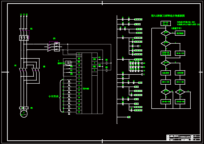 刀具库作为加工中心的辅助设备,在制造业中起着举足轻重的作用。刀具库由支架、驱动机构、传动系统、刀架、护罩、电气控制系统等部分组成。刀具的类型有盘式刀库、链式刀库等多种形式,刀库的形式和容量要根据机床的工艺范围来确定。本刀具储存系统的电气控制主要是对其货架进行运行控制和位置控制。运行控制包括运行设备的启动、制动控制。位置控制主要是对货架位置和地址进行检测。 本设计的刀库的作用是储备一定数量的刀具,刀具库中的刀具主要用于对工件的切、钻、铣、镗等的加工。XHAD—765加工中心的刀具库主要由电动机、制动器、减速器、槽轮机构、链轮链条组成。减速器是三级圆柱齿轮减速器,其结构紧凑、传动比大,均载效果好。做为动力源的电动机,要选择经济实惠的电动机;减速器中的轴与齿轮均要进行强度校核,轴按照计算弯曲应力来校核其强度;槽轮机构要选择适当的槽数与拨销数;链条链轮同样要选择好链轮的齿数;控制部分主要研究PLC在选刀方面的作用。