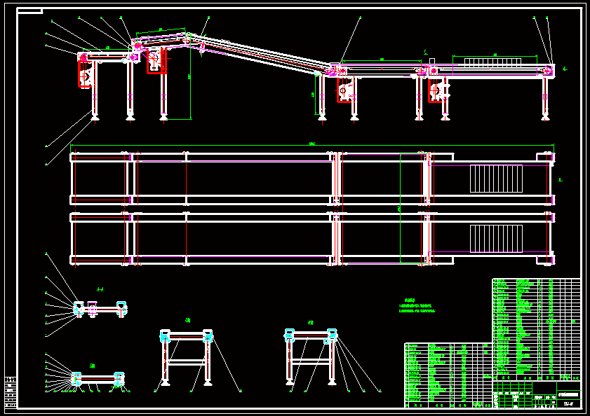 本次设计是关于输送机、码垛机的设计。首先对胶带输送机、码垛机作了简单的概述;接着分析了带式输送机、码垛机的选型及计算方法;然户根据这些设计准则与计算选型方法按照给定的参数要求进行选型设计;接着对所选择的输送机和码垛机各主要部件进行了校核。普通型带式输送机由三个主要部件组成:传动装置、拉紧装置及胶带;码垛机由推出机构、步进机和气压系统等组成。最后简单的说明了输送机和码垛机的安装与维护。目前,胶带输送机正朝着长距离,高速度,低摩擦的方向发展,近年来出现的气垫式胶带输送机就是其中一个。在胶带输送机的设计、制造以及应用方面,目前我国与国外先进水平相比仍有较大差距,国内在设计制造带式输送机过程中存在着很多不足;码垛机是机、电一体化高新技术产品,中、低位码垛机可以满足中低产量的生产需要。