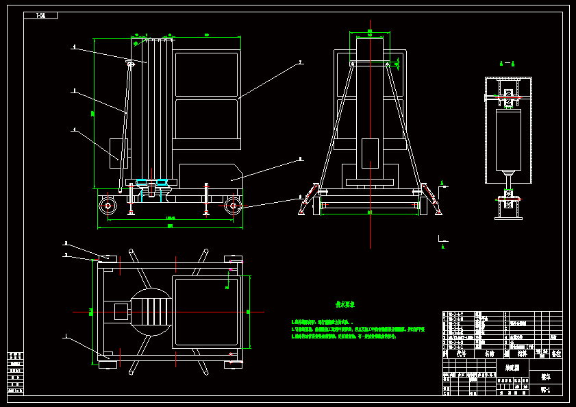 本次桅杆式起重搬运车的设计主要是设计使用优质铝型材及层叠式垂直升降结构的新型高空作业平台,具有外观新颖大方、自重轻、便于整体移动或装运、外形尺寸小、能灵活穿越门厅及走廊、噪音低等突出特点。适用于各种环境下的室外、室内高空作业。 本机由行走底架、起升桅柱、工作平台、液压系统、电气系统组成。 行走底架为型材焊接结构,装有硬胶轮及4个活动支腿,在支腿下,装有胶质软垫,使产品在转动的作业期间都不损伤地面。升降桅柱使用优质铝型材制作,升降采用液压驱动,双链条传动,运动平稳可靠噪音低;外形尺寸小,便于移动和存放。 液压系统由电动油泵、油缸、油箱、截止阀、电磁支撑阀、油管等组成。 电器系统包括,电动机和上、下电器操纵盒。它轻盈的外观,能在极小的空间内发挥最高的举升能力。使单人高空作业变得轻而易举,高效安全。 本设计适用于适用场合:物业保洁、宾馆、大厦、机场、车站、体育场、车间、仓库等场所。动力选配:交流220V(标准配置)、交流380V电源、直流电源、手动泵。