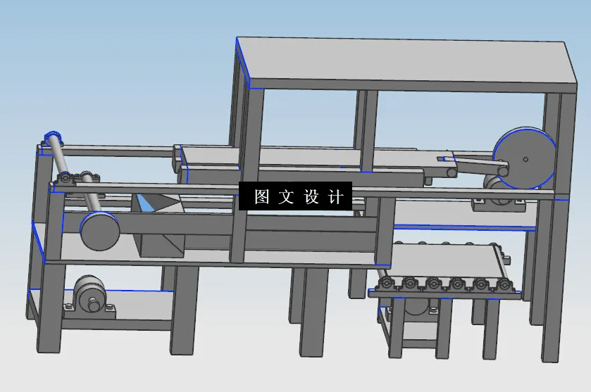 本课题主要利用送膜装置对塑料膜进行平整和拉伸,利用翻领成形器实现塑料膜对包装袋的初步成型,利用热封装置实现初成型包装袋封口,利用四杆机构实现包装袋的自动化运输,利用计量装置实现对洗衣粉重量的确定,利用辊子输送机实现成品洗衣粉包装袋的运输。经送膜装置、四杆机构、热封装置、计量装置、辊子输送机等计算,完成自动给袋水平式洗衣粉包装流水线设计。