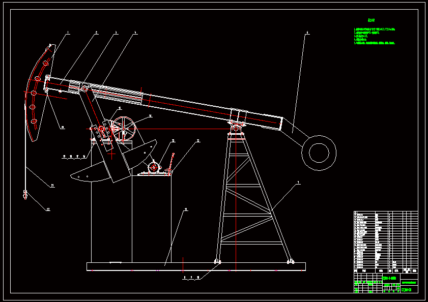 抽油机是构成采油设备重要组成部分,常规抽油机的传动机构为曲柄摇杆式四杆机构,其他常见游梁式抽油机的传动机构大多在常规抽油机基础上进行改进,如柔性四连杆机构的双驴头抽油机和六杆机构的曲柄导杆抽油机等,本文设计的抽油机传动机构为摆动导杆式机构,在电动机驱动下,通过带传动,由于带传动比不能过大,再通过减速器输出扭矩,带动曲柄转动,曲柄与滑块铰接,滑块在摆动导杆上往复滑动,从而实现摆动导杆上下摆动,实现油井的机械式开采。 本文主要介绍了新型摆动导杆式抽油机的参数计算、运动解析法,再用adams对摆动导杆机构进行了运动和受力的仿真分析,以及进行了关键零部件的结构设计和强度校核。