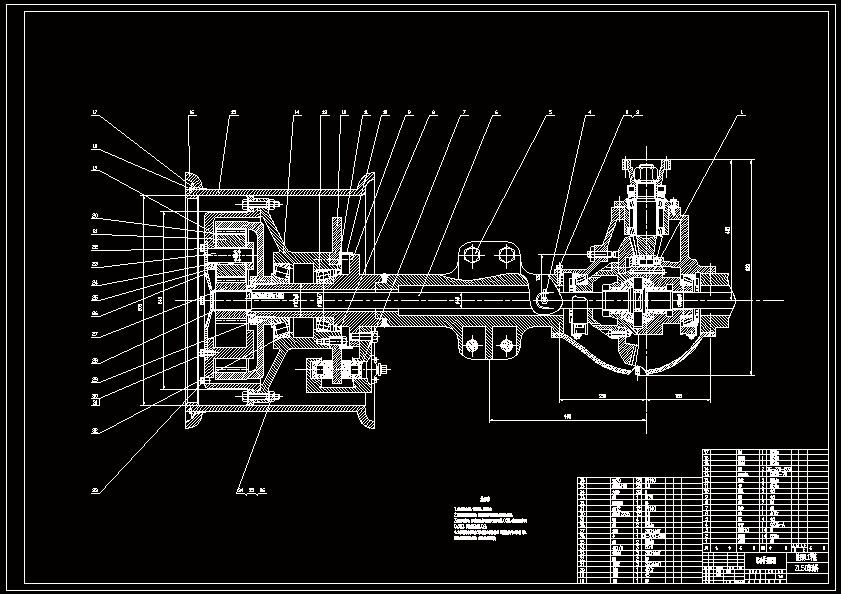 本次设计内容为ZL50装载机驱动桥设计,大致上分为主传动的设计,差速器的设计,半轴的设计,最终传动的设计四大部分。其中主传动锥齿轮采用35°螺旋锥齿轮,这种类型的齿轮的基本参数和几何参数的计算是本次设计的重点所在。将齿轮的几个基本参数,如齿数,模数,从动齿轮的分度圆直径等确定以后,用大量的公式可计算出齿轮的所有几何参数,进而进行齿轮的受力分析和强度校核。了解了差速器,半轴和最终传动的结构和工作原理以后,结合设计要求,合理选择它们的形式及尺寸。本次设计差速器齿轮选用直齿圆锥齿轮,半轴采用全浮式 ,最终传动采用单行星排减速式。