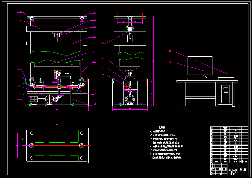 本次设计课题主要研究对象为传感器的蠕变参数的测量,使用自动加载卸载的压力加载机对传感器施压并测试其性能,设计加载机机械结构,数据采集程序,要求所生产的加载机有易于生产,操作简便,测量精确,并且节约人力的特点。 本文首先概述了试验机的基本定义、分类与国内外一些重要生产商的成果。第二部分论述了所想到的四种方案并对这些方案优缺点作了分析和对比。前三种方案均为利用滚珠丝杠,最后一种则利用液压。在彼此比较后决定选第一种方案。第三部分则是说明了试验机的主要机械传动部分的设计以及对它们的校核过程。试验机的传动部分主要由蜗轮蜗杆、锥齿轮、滚珠丝杠三部分组成。经过校核后所有设计均符合要求。用CAD软件绘制了整个试验机的二维装配图和蜗轮蜗杆、锥齿轮、轴等二维零件图。在文章的最后简明的介绍了做本次的一些心得体会。