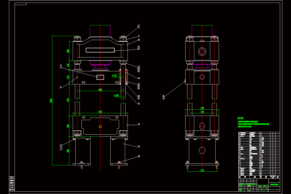 本文针对木塑复合材料热压成型机进行设计,热压机采用三梁四柱式,此结构应用广泛,公称力设计为1000kN,通过更换模具可适应多种不同形状尺寸零件的加工,也可进行冲压、挤压等加工,具有很广的使用范围。