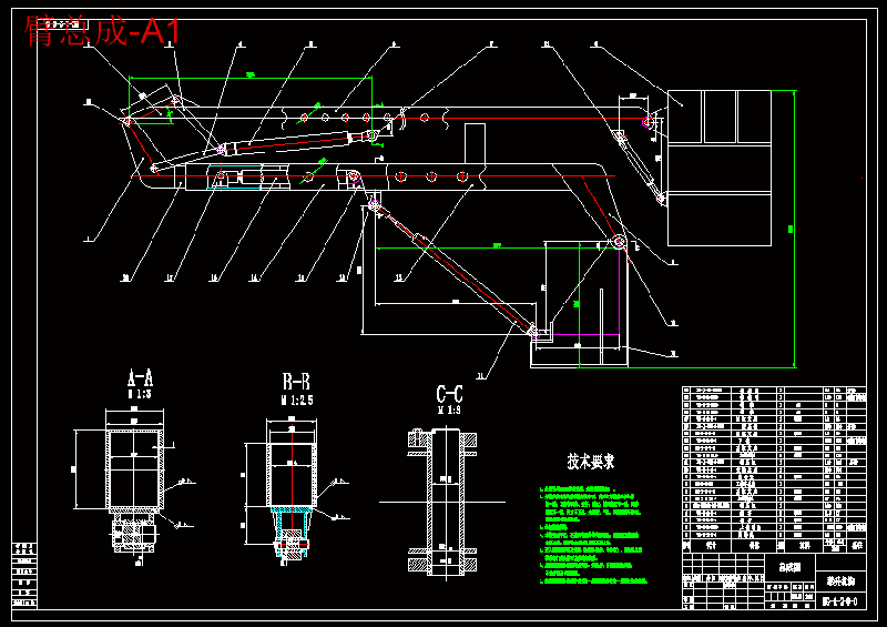 本设计主要是对高空作业车工作机构和回转机构进行设计。 目前,我国高空作业车在我国使用较多的集中在车站、地铁、商店、工厂等,但在一些城市部门比如城建处、林业部门、公共设施的保养、维护使用等对高空作业车的使用较少。主要原因是国内产品技术性能及参数还不能完全满足使用的要求,在产品用途和功能上还需更新,需要从产品的适应性、技术性能上进行较大的突破。 在这篇文章中,主要对高空作业车的举升臂和回转机构做了改进。根据城市用高空作业车的使用工况主要是工作高度不高,障碍物较多,在这种工况下,需要高空作业车越障能力高,举升机构工作幅度大,回转机构回转平稳,稳定,能频繁的启动、制动。 本方案中采用混合式臂高空作业车。在下臂中另设一截伸缩臂,这样就有效增加了高空作业车的工作范围,更加适合在障碍较多的地方大范围的工作。另外,本方案采用了高速马达加上减速机的形式,本方案中回转机构重量轻、尺寸小,且作为多级减速的少齿差行星传动齿轮性能优越,解决了城市用高空作业车的面临的问题