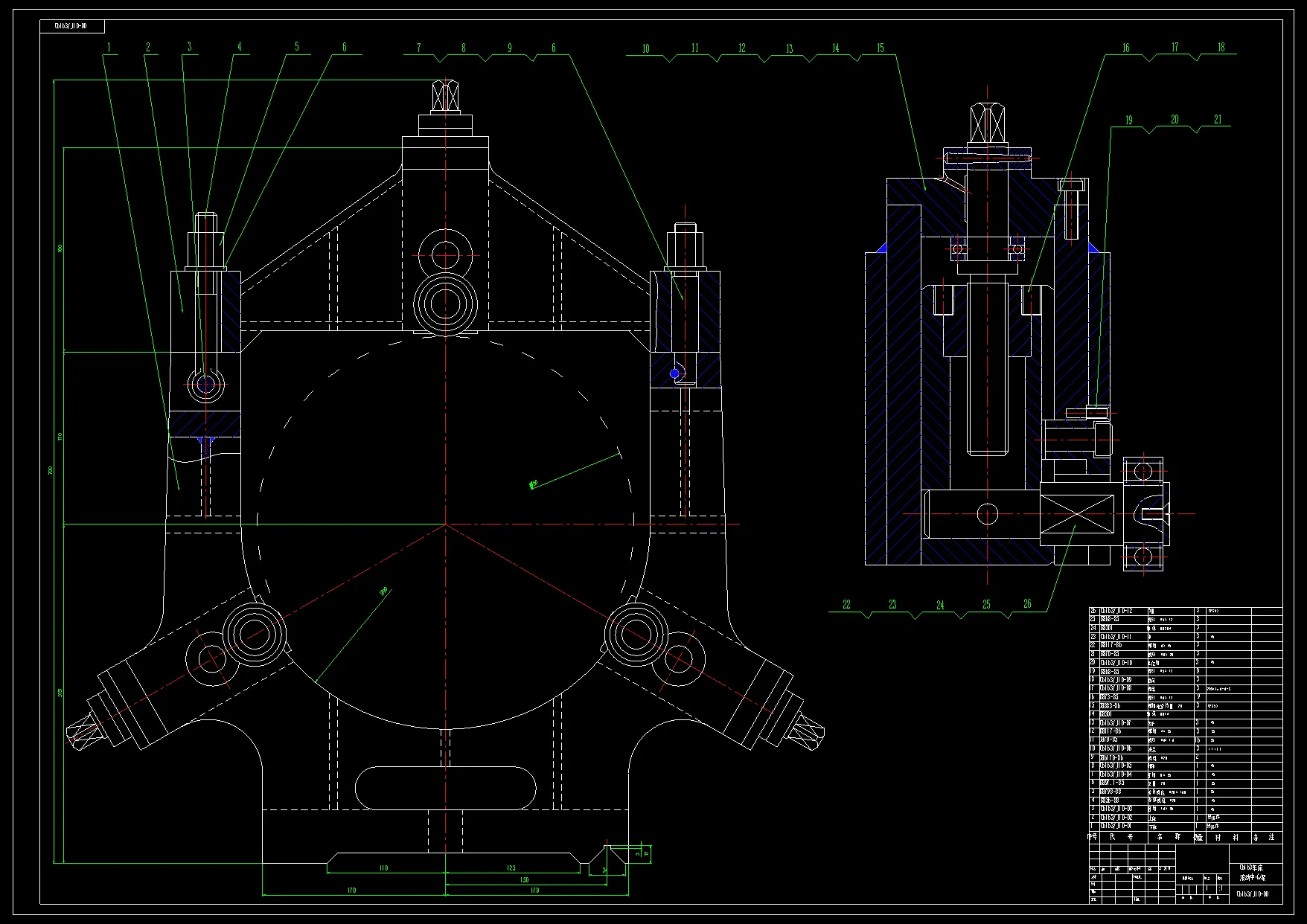 这次中,我所从事设计的课题是C6163车床中心架设计。此类车床中心架属于经济型中档精度机床,这类机床的传动要求采用手动与电控双操纵方式,在一定范围内实现电控变速。总体的设计方案就是对传动方案进行比较,绘出转速图,对箱体及内部结构进行设计,包括轴和齿轮的设计、校核等。