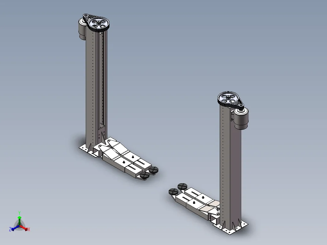 机械式双柱升降机主要由两个举升柱、两个升降滑架、两个托臂和两个轨道式托板组成。通过带传动和丝杠的螺旋传动将电机的动能传递给托板来实现被载物体的上升或下降。本次设计首先确定了升降机的结构、传动方法以及锁紧机构等设计方案;然后进行了详细的计算和分析来保证升降机各部分的应力校核,使其能够正常工作:最后为了使设计成果更加简单明了地表达,绘制了总装配图、主要部件零件图和三维装配图。