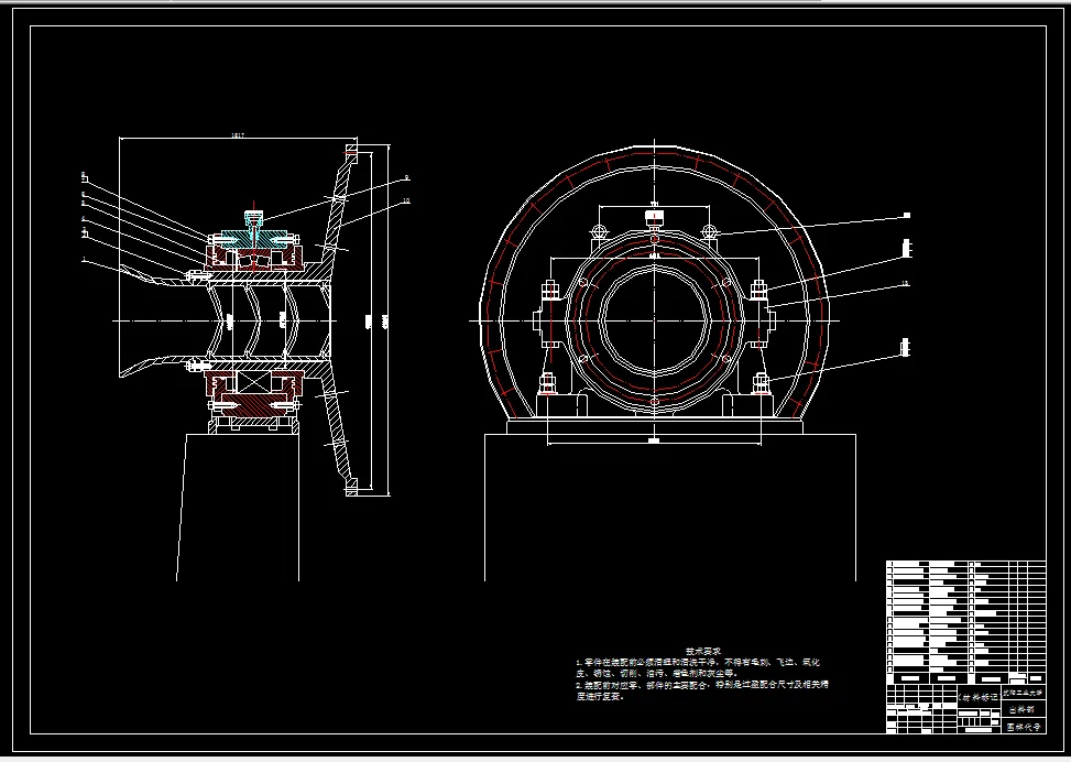 本课题主要是对K2112.00溢流型球磨机进行结构设计,根据K2112.00溢流型球磨机的技术要求,合理地确定设计方案,并对其机械结构进行设计,包括进料部、传动部、筒体等,绘制球磨机的装配图,主要部分的部件图以及零件图。本课题主要是对球磨机的轴承部,传动部和筒体部进行优化设计。了解了球磨机的工作原理和载荷分布的情况,就可简化轴承部的结构,而使用通用件,可以降低球磨机的成本,满足企业的需求。筒体部的优化:改进筒体材料、合理布置筒体衬板、合理选择衬板材料和类型、优化进出料装置等,筒体部的改进可减少进料端与出料端矿浆的泄露,提高球磨机的运行效率,延长使用寿命,降低能耗。通过查阅资料可知,所设计的溢流型球磨机的直径D=2100mm,长度L=3600mm,经过计算可得到球磨机的转速、功率、装球量等自身参数,进而对其传动部进行设计,选择合适的电动机、减速器、相对应的联轴器等,且合理地设计球磨机的齿轮传动结构,并进行校核。可以降低成本,减少能耗,提高经济效益。