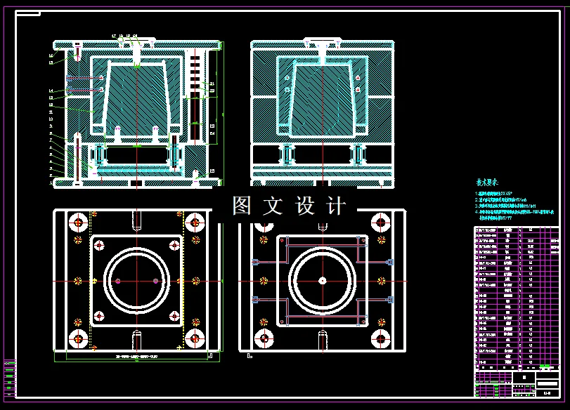 本次毕业设计的内容是用模具生产圆盖,并且制定出相关的工艺路线,设计出生产所用模具。工艺路线主要包括落料、拉深、切边等工序,设计其模具,适合实际生产。冲压工艺的选择是在查阅了相关资料和对产品外形成尺寸进行了仔细分析的基础上制定出来的;冲压模具的设计综合考虑了经济性、零件的冲压工艺性和复杂程度等诸多因素;产品毛坯的展开尺寸计算是在方便计算又不影响零件成型的前提下转化为熟悉的模型进行的。模具的主要部分零件给出了相应的尺寸计算,同时给出了详细的零件结构设计,并附有相应的零件图,最后根据零件结构设计和生产零件的要求生成了总装配图。