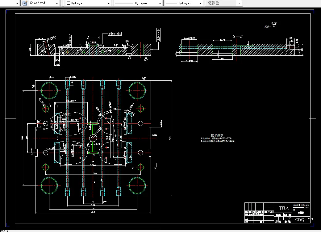 由于塑件的外形轮廓及内部结构较为复杂,因此在该设计中采用一模四腔,对称平衡式布置,型芯型腔大量使用镶嵌件,以减少生产成本,保证塑件制品的加工成型。同时盖的下端面需考虑侧向分型抽芯,这里采用的是斜导柱滑块外侧抽芯,足以保证塑件制品的分型取出。在设计方面,主要进行了注射成形的基本过程、塑件结构分析及材料的选择、拟定模具结构形式、模具材料的选用、模架的选择、排气系统设计、温度调节系统的设计;在计算方面,主要进行了注射机型号的选择及相关参数的校核、浇注系统的设计、成型零件设计、侧向分型与抽芯机构设计、温度调节系统的设计;在编程方面,选择一个具有代表性的成型零件,如:动模座板进行NC编程。该模具结构设计紧凑合理,开合模顺畅,便于加工装配。
