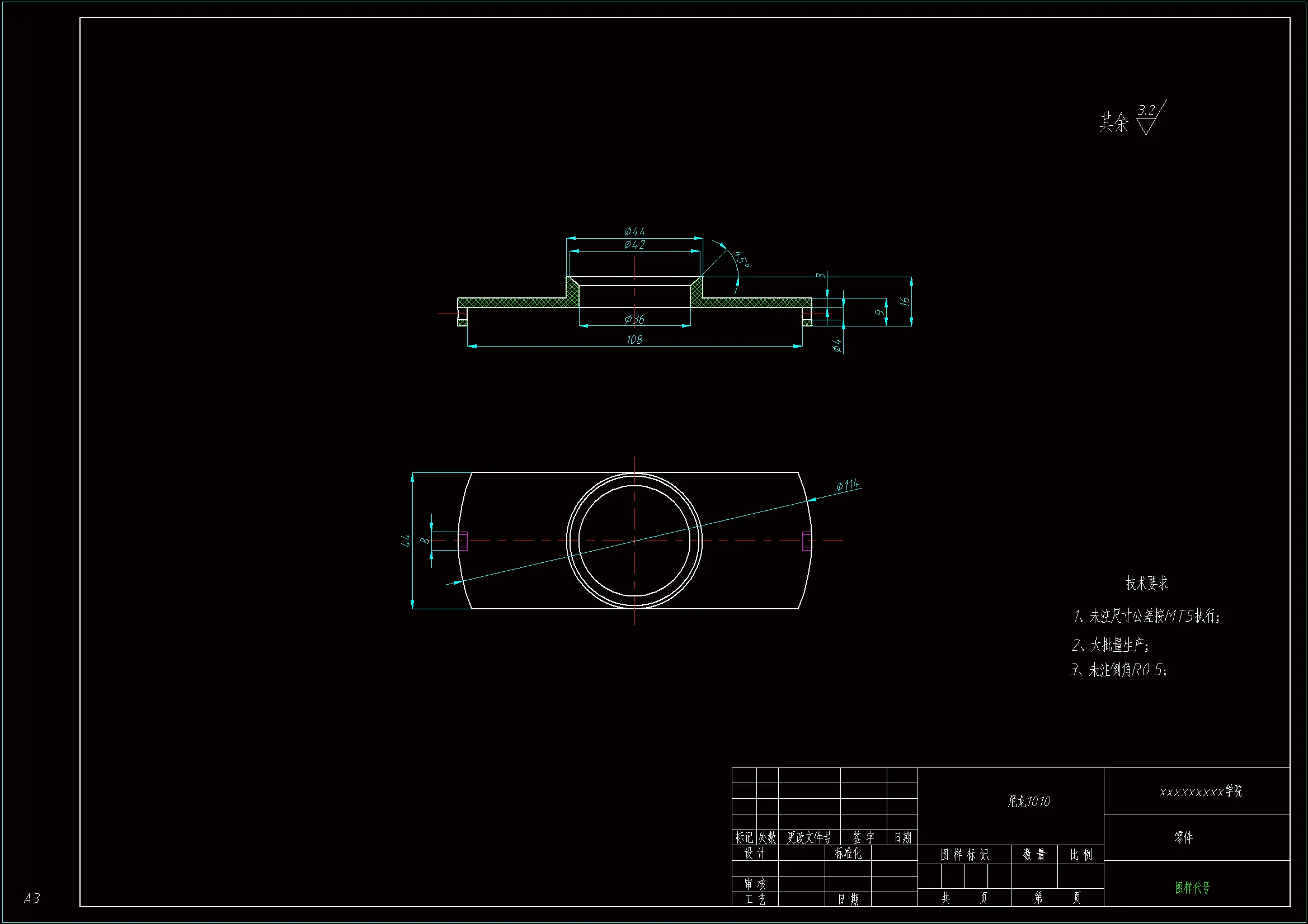 本课题以某尼龙外壳的模具设计为研究对象,设计一套尼龙外壳的模具。通过对给定零件的结构分析、成型方法的分析、加工工艺及效率的分析,选择塑料模具的结构形式及运动原理及机构组成。通过机构及零部件CAD设计与计算等过程,来培养学生设计、计算、制图及计算机应用能力,以提高分析与解决工程实际问题的能力。