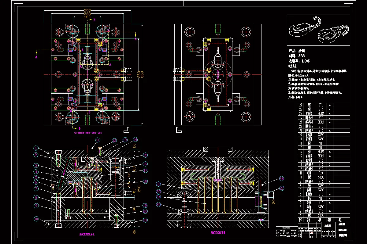 关键词:挂钩;侧浇口;注射机;冷却系统;注塑模具