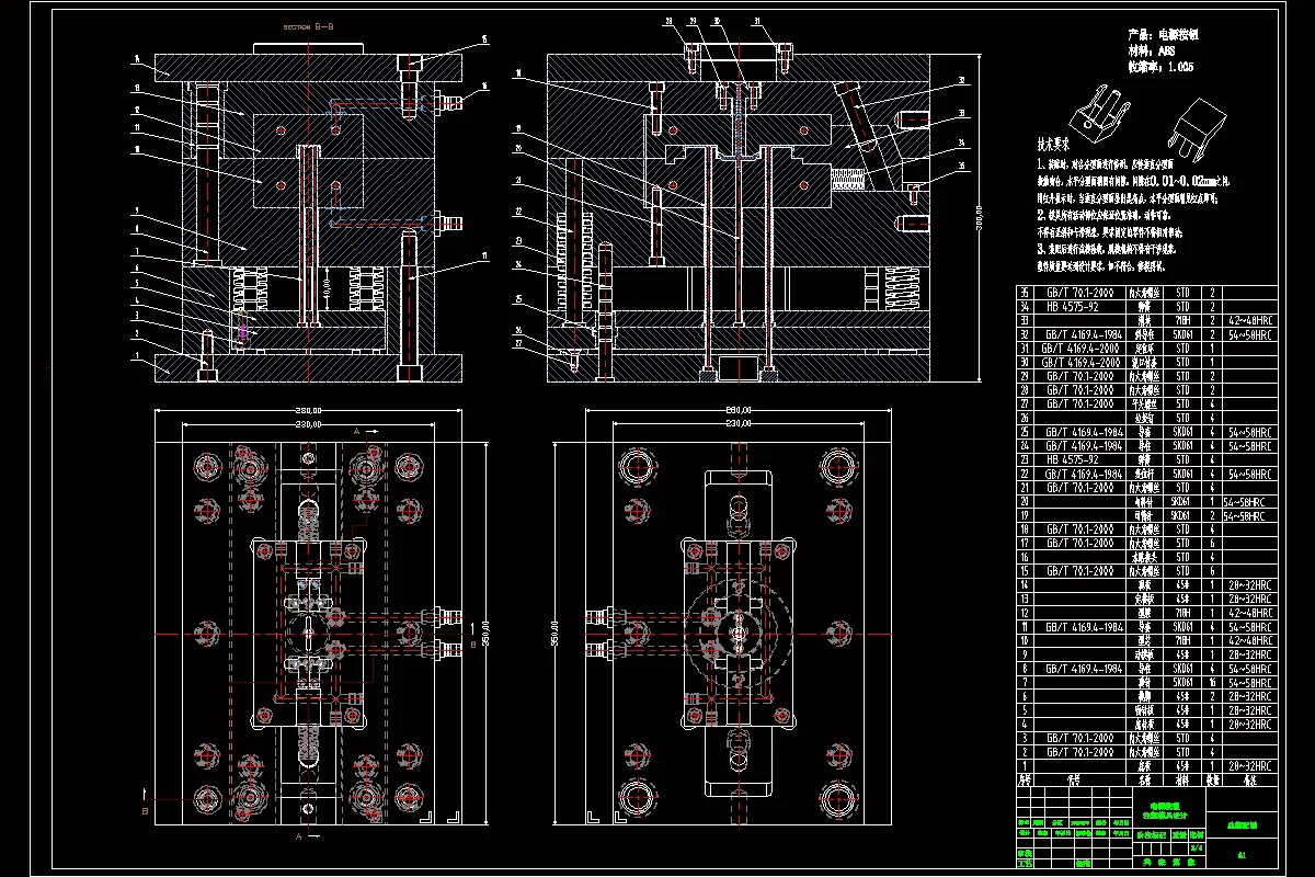 根据塑料电源按钮制品的要求,了解塑件的用途,分析塑件的工艺性、尺寸精度等技术要求,考量塑件制件尺寸。本模具采用一模两腔,潜浇口进料,注射机采用HTF80X1A型号,设置冷却系统,CAD和UG绘制二维总装图和零件图,选择模具合理的加工方法。附上说明书,系统地运用简要的文字,简明的示意图和和计算等分析塑件,从而作出合理的注塑模具设计。