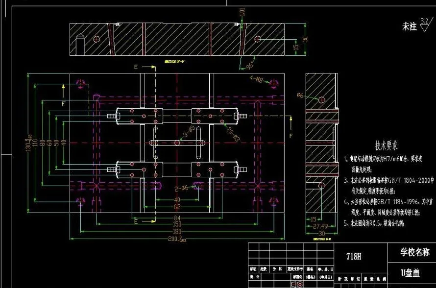 权衡了塑件的外形尺寸。本次的模具采用一个模具四个成型腔,进料口开设在侧面,注射机的型号采用HTF80XB,并且还要具有冷却系统。拥有了合理的加工步骤,利用二维CAD和三维PROE绘制总的装配图和主要的零件图。
