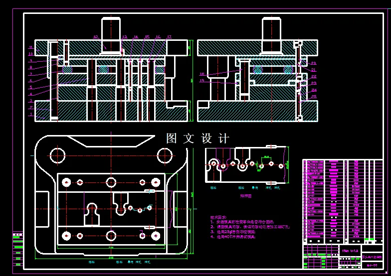 通过对课题的冲压工艺的分析及模具零件的计算后,首先对主要的工作零件以及非标零件进行二维图的绘制,并且绘制本套模具的装配图;其次对主要工作零件的加工进行工艺卡片的编制。