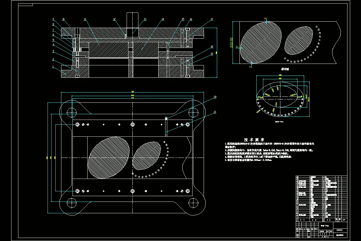 本设计主要对钥匙环进行级进模的设计,本设计首先阐述了冲压模具的国内外发展以及发展趋势,然后根据钥匙环的结构特点进行工艺分析和排样方案的确定,通过几种方案对比选择最佳方案,根据冲压模具设计的一般步骤对凸凹模、凸模固定板、垫板等零件进行设计,选择合适的模架和冲压机,对压力机进行了校核计算,还有一些关键零件进行了校核,为了简化模具结构对冲孔和落料采用相同的固定板固定,落料的凹模采用整体式的结构,利用CAD软件完成了二维装配图和零件的绘制。