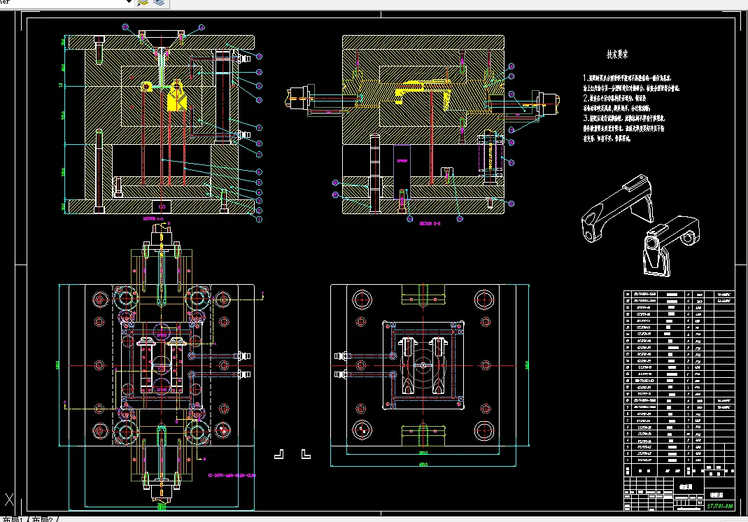 关键词:台灯支架;注塑模;两板模;浇注系统;脱模机构;