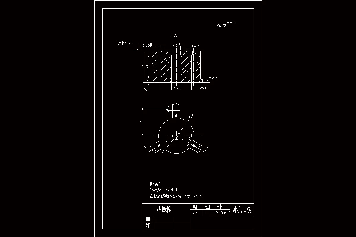 汽车发动机异形垫片工件由冲裁工艺构成,工件内外轮廓均由直线圆弧相切构成,在工件上有三个直径为6mm和1个直径为10mm的孔,工件具备轴对称和中心对称。因此模具的设计和排样从冲孔、落料、等工艺分析出发,需要考虑各孔位冲裁时对外轮廓影响情况,查阅相关设计手册,工件是否符合冲裁加工。从实际生产的角度出发,为了节约模具设计、用材、制造成本,提高工件生产效率和尺寸精度,综合分析该工件的模具设计方案采用了复合模具冲裁。在模具设计前主要分析个尺寸轮廓工艺的受力情况,查找未标注公差的尺寸公差,根据尺寸公差来确定模具制造的精度,确定排样方案和条料的宽度,选取模架结构,计算模具的冲裁间隙、压力中心、模具闭合高度和冲压力的综合,再一步的选取相对应的冲压设备,使用CAD制图软件绘制模具装配图、主要工作零件图,撰写模具相关设计说明书。