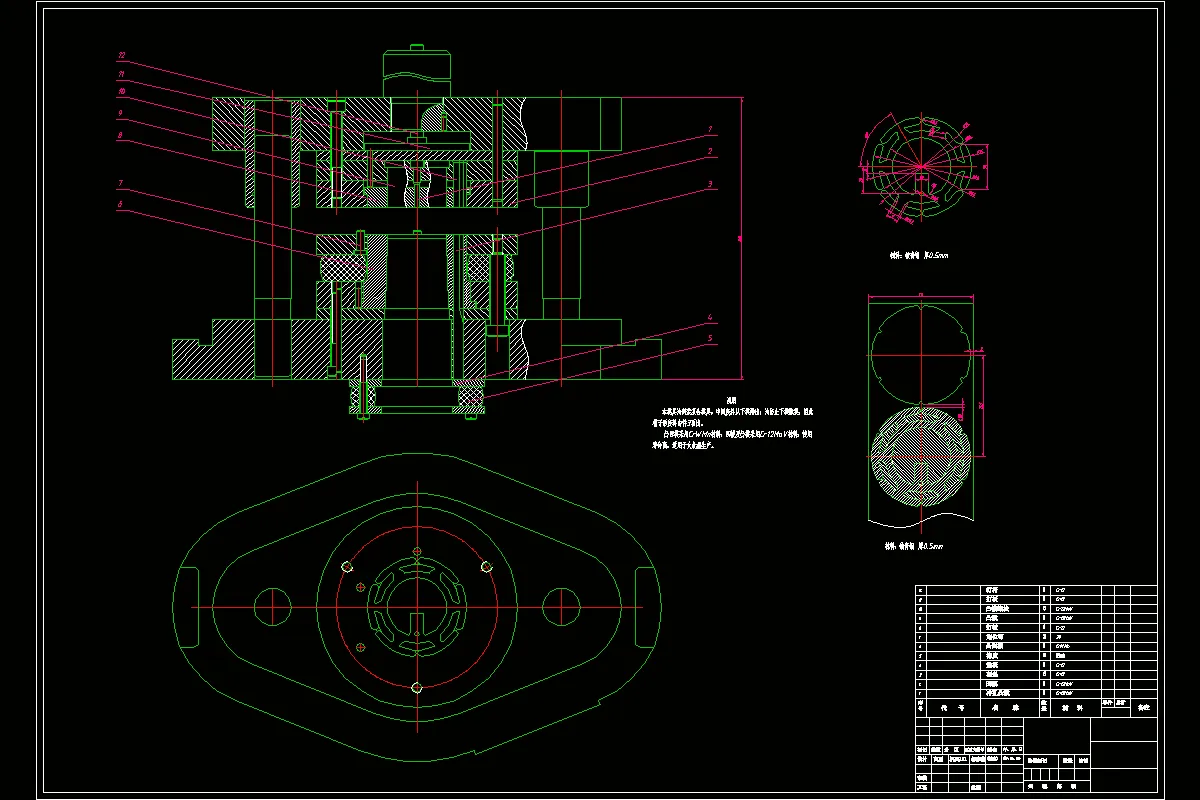 发动机转子复合模具设计。从课题所给定的零件图,结合其外形结构和尺寸、公差,首先对其工件工艺进行分析;其次,进行模具的棑样设计,合理的选择排样搭边值;再次,计算模具的总冲压力,找出模具的压力中心,选择符合的冲压设备型号的;最后选择模具使用的标准件,绘制模具总装图及所有非标准件以外的零件图,编写设计说明书。结合工件的尺寸、精度、生产批量,从实际生产的角度出发,为了节约模具制造成本、提高产品生产效率,保证工件的生产精度,选择复合模具的冲裁方案。
