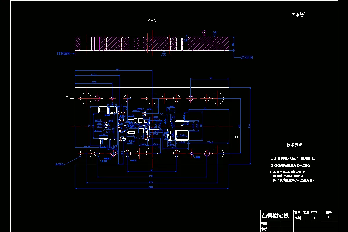 在文档中第一部分,主要叙述了冲压模具的发展状况,说明了冲压模具的重要性与本次设计的意义,接着是对冲压件进行工艺分析,完成工艺方案的确定。第二部分,对零件排样图的设计,完成材料利用率的计算。再进行冲裁工艺力的计算和冲裁模工作部分的设计计算,为选择冲压设备提供依据。最后设计主要零部件和选择标准件,为本次设计模具的绘制和模具的成形提供依据,以及为装配图各尺寸提供依据。通过前面的设计方案画出模具各零件图和装配图。