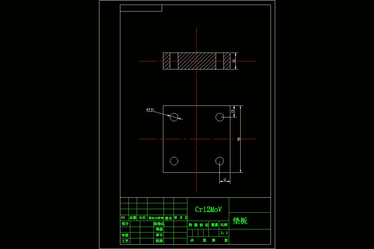 这次设计垫片设计说明书的第一个部分是对我这次设计课题的第一套模具,垫片的冲孔落料复合模的工艺的分析,工艺的计算,主要零部件的设计。这次垫片设计说明书的工艺计算,主要零件的设计。这都为选择冲压设备提供重要依据。也为本次模具设计的AutoCAD装配图,以及AutoCAD主要零件图绘制提供了依据。