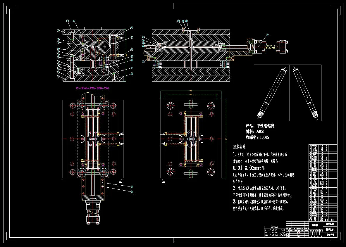 本次设计决定采用一模6腔,侧浇口,大水口两板模具。在开始进行模具结构设计之前运用三维绘图软件和AUTOCAD二维绘图软件对xx三维立体图及产品零件图进行绘制,从产品的成型结构特征开始、到对分型面分析及位置的选择、模具浇注系统设计、型芯型腔结构设计和尺寸计算,脱模推出机构、冷却系统、导向机构的设计等多方面详细叙述,通过此次对洗发水喷头按压手柄模具设计,对注塑模的未来发展和形的设计方法以及模具设计全过程有一个新的认识。