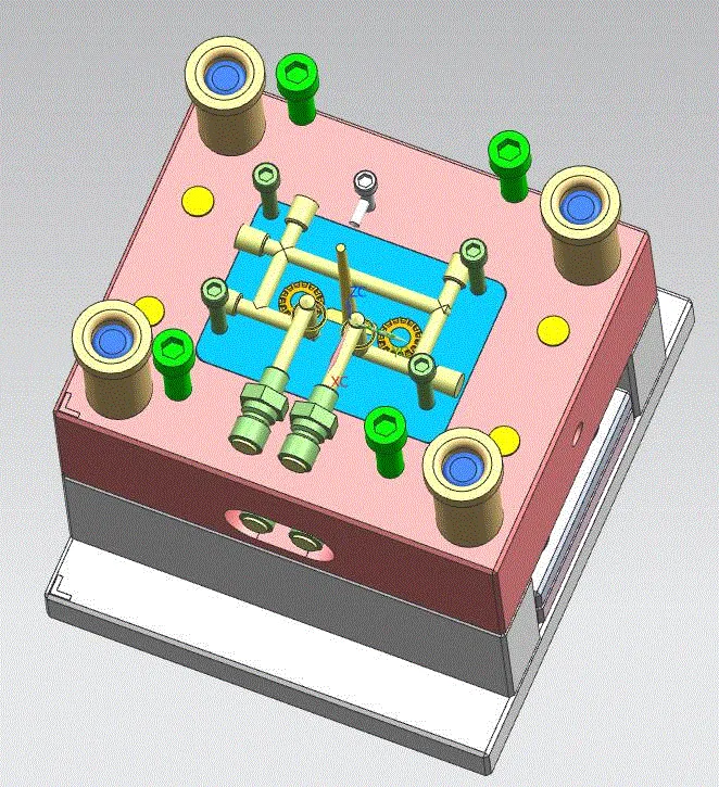 本次设计是关于对学生用走带块注塑模具的设计。结合当前注塑模具的背景,对所给的零件二维图进行分析,通过对其成型分析来设计出满足该零件成型的模具。首先需要对零件的壁厚、成型收缩、尺寸精度及ABS的成型性和流动性进行分析,拟定其成型工艺,对其工艺参数进行初步设定,然后确定具体成型工艺方案。之后需要结合工艺分析结果来设计模具的各机构(包括成型零部件、冷却系统、排气系统、导向系统和脱模系统等)。还需要选择满足条件的注塑成型设备(注射机)及合理的模具材料,为了保证模具的使用可靠性,需要对模具相关参数进行计算校核(包括成型零部件尺寸计算、型腔壁厚计算、推杆强度校核及注射机参数校核等)。最后,绘制完整的模具装配图以及相关零件图。