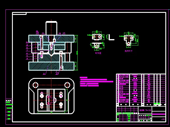 冲压工艺与模具设计应结合工厂的设备、人员等实际情况,从零件的质量、生产效率、生产成本、劳动强度、环境的保护以及生产的安全性各个方面综合考虑,选择技术先进、经济合理、使用安全可靠的工艺方案和模具,以使冲压件的生产在保证达到设计图样上的各项技术要求,尽可能降低冲压的工艺成本和保证安全生产。 关键词: 工艺性分析、模具工艺方案论证、工艺计算、加工设备选定、制造工艺、收集和查阅设计资料,绘图及编写设计技术文件等。