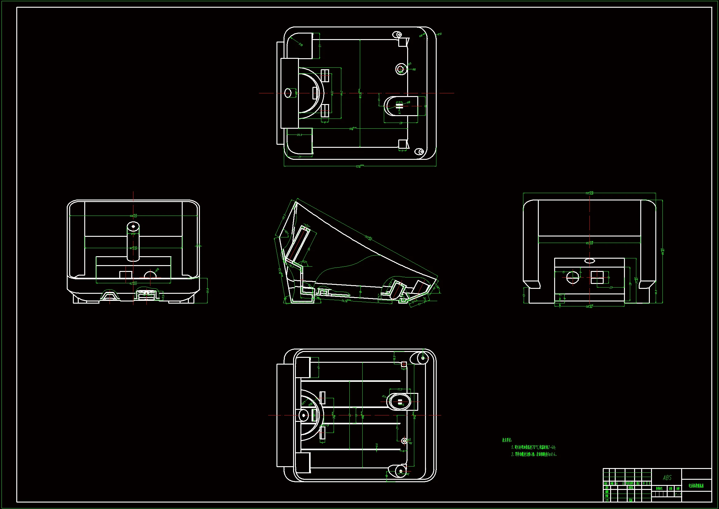 根据塑料制品的要求,了解塑件的用途,分析塑件的工艺性、尺寸精度等技术要求,选择塑件制件尺寸。本模具采用一模两件,侧浇口进料,注射机采用海天150X1A型号,设置冷却系统,CAD和 PROE绘制二维总装图和零件图,选择模具合理的加工方法。附上说明书 ,系统地运用简要的文字,简明的示意图和和计算等分析塑件,从而作出合理的模具设计。