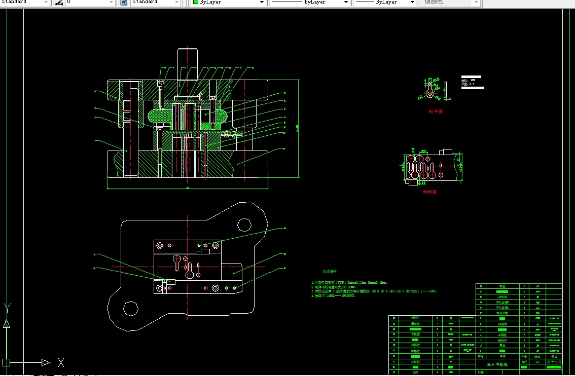 本说明书主要是针对焊片的设计,本次设计采用了冲孔落料级进模,也针对了非标准零件的设计。其中,在第一、二章