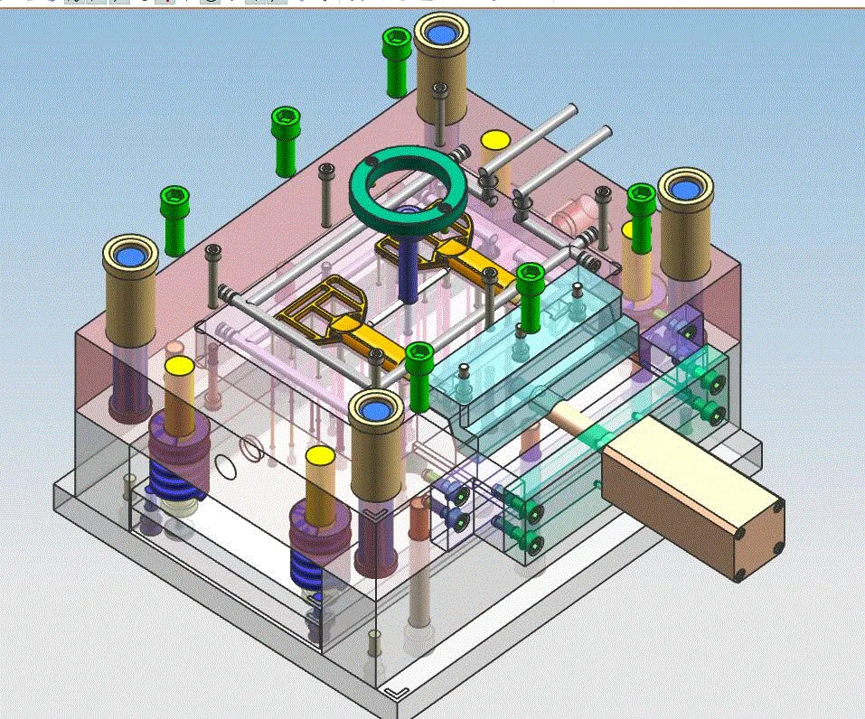 本次设计的题目是简便擦头注射成型模具设计,该塑件属于薄壁圆筒件,根据塑件的结构特点,采用塑件的底面为分型面和一模两腔模具结构,浇注系统选用侧浇口,并尽量缩短分流道长度,选择注塑机型号为HT160X2B。主型芯由定模型芯、动模型芯组成。采用浮动小型芯完成抽芯。刚性连接的推杆和脱模板推动塑件完成脱模。在动、定模型芯上开环形槽,设置密封圈,水道出口与进口在模具宽度方向,保证水流通畅且为湍流。