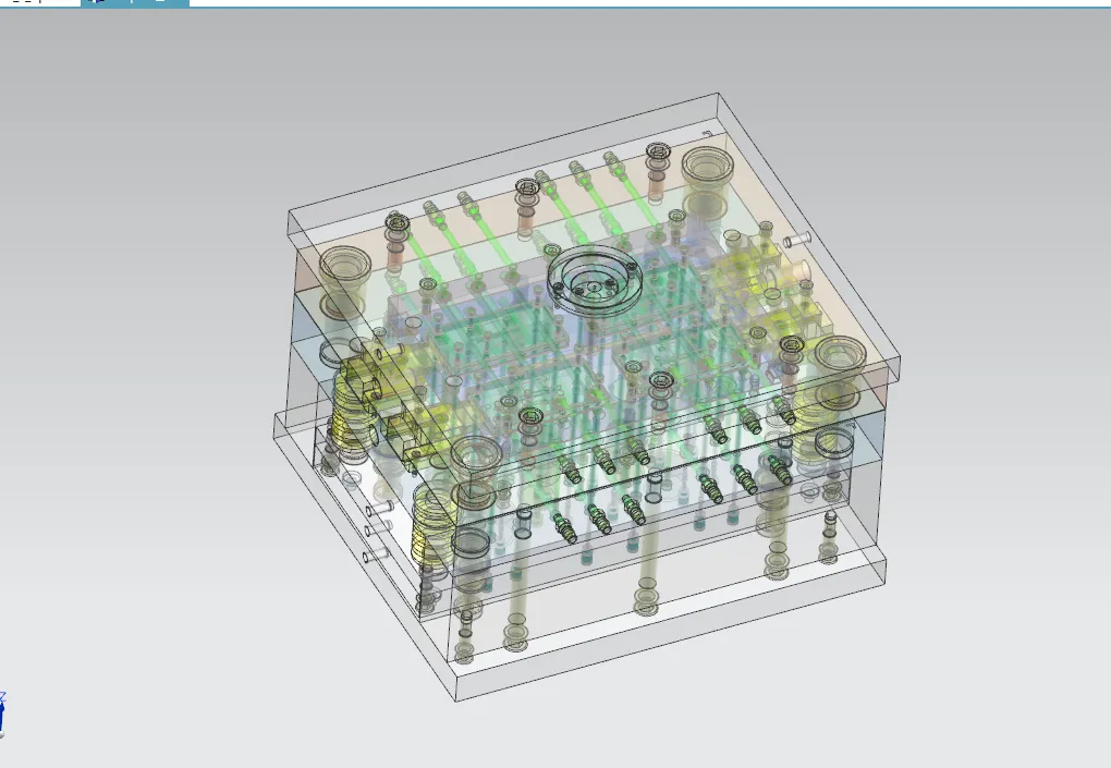针对注塑模具结构设计环节,进行了浇口和浇注系统的设计,对于塑件的分型,本次设计中选择了平面分型的方式来建立型芯和型腔的三维模型,模具的在注塑充填的时候会非常热,所以设置了冷却水道来实现模具的降温,同时可以缩短注塑周期,对于塑件的脱模环节,均匀的布置了顶出机构,实现塑件的自动脱模。模架则采用了标准化的模架,标准化模架的时候能够快速的制造和生产模具,同时降低模具制造成本。