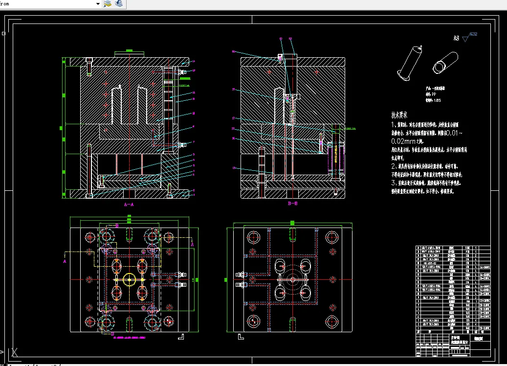 本次设计中,采用了AutoCAD二维设计软件绘制注塑模具的二维装配图与非标零件图,采用了三维软件绘制模具的整体装配图,在计算机辅助设计中,还采用了专业的插件来进行辅助设计。