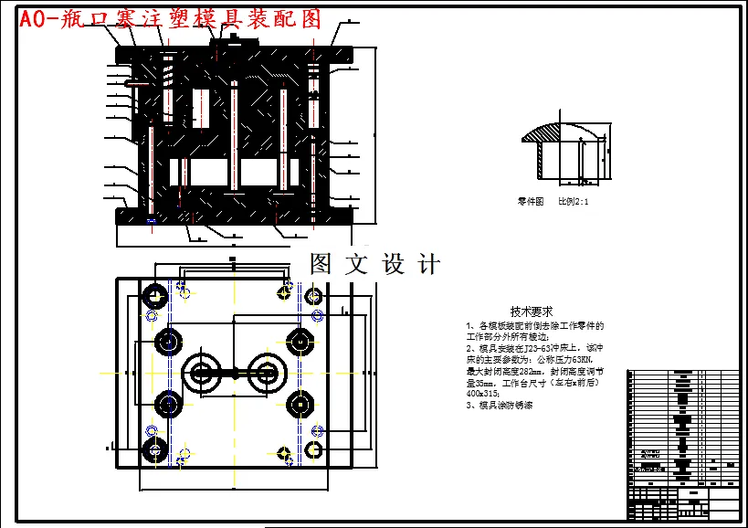 本设计以瓶口塞为研究对象,设计模具原型,构思出瓶口塞大概形状及其尺寸,选用瓶口塞的材料,用软件设计出模具,确定瓶口塞的形状及其尺寸;用软件对瓶口塞塑件开始模流分析,定下浇口位置,建立浇注系统及冷却系统,分析建立好的浇注系统和冷却系统,并对浇注系统和冷却系统进行优化,得出模流分析结果统计;用软件绘制出瓶口塞塑件的模型,确定模具总体的设计方案,设计并计算浇注系统、成型零部件,选择合适合理的模架,根据模架设计导向及推出机构以及型芯型腔等,设计温度调节系统,对模具进行装配及其校核;绘制出装配图,制定模具装配过程的步骤,制定模具装配工序图,了解模具装配注意事项,对模具进行调试与试模