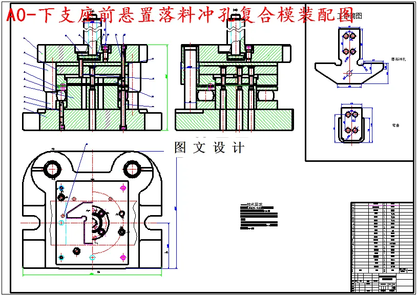 零件为一落料冲孔弯曲件,可提出的加工方案如下: 方案一:先落料,再冲孔,最后弯曲。采用两套单工序模和一套弯曲模生产。 方案二:先落料—冲孔复合冲压,最后弯曲。采用一套复合模和一套弯曲模生产。 方案三:先冲孔—落料连续冲压,最后使用弯曲。采用一套级进模和一套弯曲模生产。 方案四:先落料,再弯曲,最后使用冲孔。采用一套落料模、一套弯曲模和一套弯曲模. 方案一模具结构简单,但冲裁时需两道工序、两副模具,生产效率低,零件精度较差,在生产批量较大的情况下不适用。方案二冲裁时只需一副模具,冲压件的形位精度和尺寸精度易保证,且生产效率高。尽管冲裁模具结构较方案一复杂,但由于零件的几何形状较简单,模具制造并不困难。方案三冲裁时也只需一副模具,生产效率也很高,但与方案二比生产的零件精度稍差。欲保证冲压件的形位精度,需在模具上设置导正销导正,模具制造、装配较复合模略复杂。方案四,由于孔的位置及大小不影响以后的弯曲,与方案一一样生产效率低,零件精度较差,不适于大批量生产。所以,比较四个方案欲采用方案二生产。现对复合模中凸凹模壁厚进行校核,当材料厚度为6mm时,可查得凸凹模内孔不积存废料最小壁厚为6mm,现零件上的最小间距为7mm,所以可以采用复合模生产,即采用方案二。仅供参考。