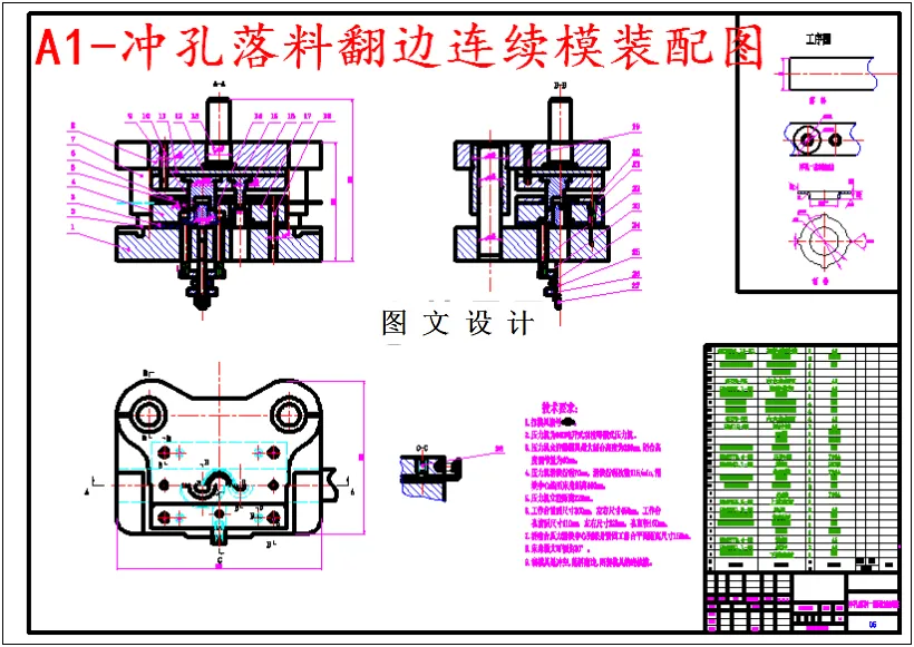 根据对零件图的分析,其冲压基本工序可初步定为:剪料——冲孔——落料翻边。冲压加工过程要求提高生产效率,降低生产成本来满足生产要求,可要求工序数目尽量减小。以本设计将冲孔、落料翻边由两套连续模具完成。