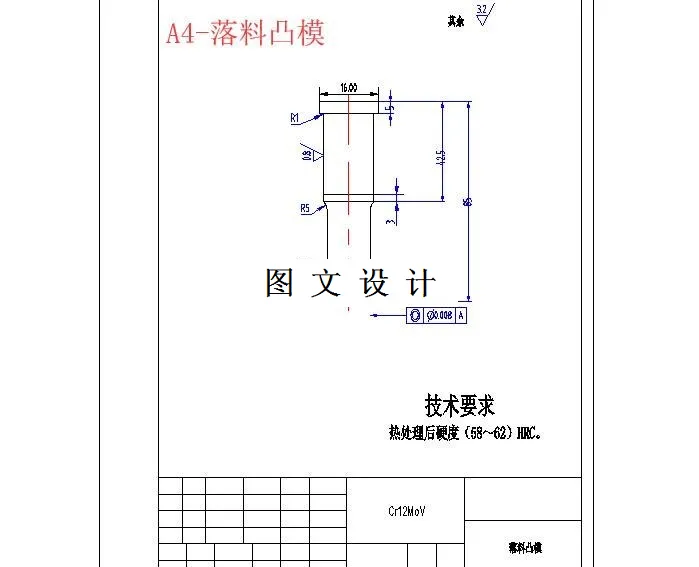 该制件的材料是08钢是一种高碳钢,而该制件的厚度是1mm。该零件是负角度冲压,结构简单,但是制作有点困难。方案(1)(2)属于单工序模冲裁工序冲裁模指在压力机一次行程内完成一个冲压工序的冲裁模。由于此制件生产批量大,尺寸又较这两种方案生产效率较低,操作也不安全,劳动强度大,故不宜采用。方案(3)属于连续模,是指压力机在一次行程中,依次在模具几个不同的位置上同时完成多道冲压工序的模具。于制件的结构尺寸小,厚度小,连续模结构复杂,又因落料在前弯曲在后,必然使弯曲时产生很大的加工难度,因此,不宜采用该方案。