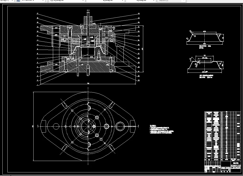 复合模是冷冲压模具中加工精度、效率较高的一种设备。对于需经过几道工序才能冲压完成的零件来说,应尽可能根据零件的工艺要求采用复合模加工。本文就是对离合器壳体的前道工序半成品的进一步加工时,所需的复合模设计。这套模具适合于离合器壳体的中心大孔冲孔、成形、修边加工,其后尚有几道加工工序。在对该复合模进行设计时,主要的问题是对原工序件的底部成形方式的设计,由于要保证原工序件的大致形状精度,在这里采用局部成形的方法对底部的凸起进行加工。因此,确定合适的压边力就成了起伏成形能否成功的关健。同时,成形锥形凸包时,成形凸凹模的设计也较重要。为了设计的标准化,尽可能选用了标准件,如模架,模座,压边机等。最后对模具的一个主要零件导套进行了简单的加工工艺路线的制定。本设计对于进行起伏成形模具设计有一定的参考作用。