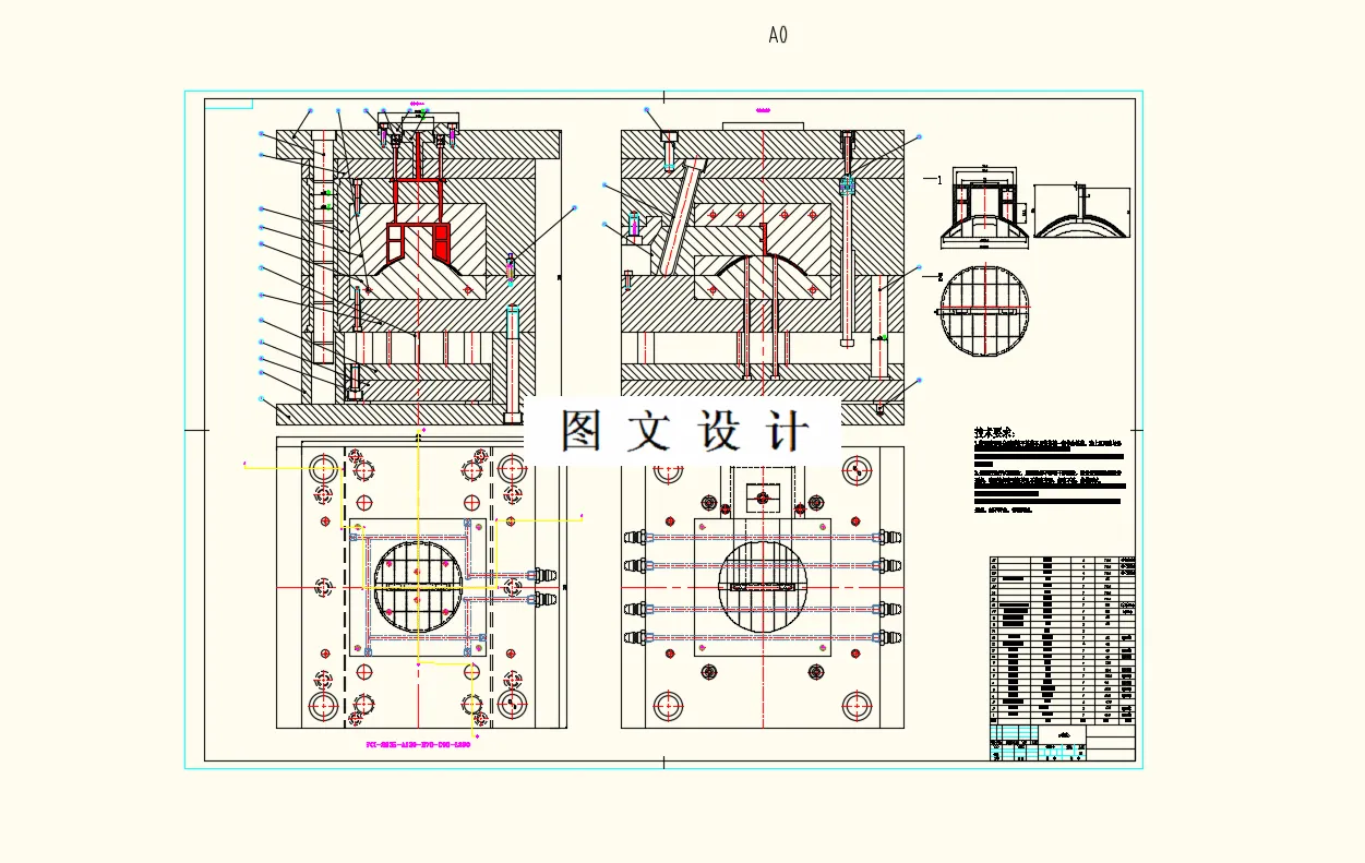 本次毕业设计的题目是汽车灯罩的注塑模具设计,通过查阅资料,确定了本次设计的流程和需要完成的操作。 1.对产品的分析,(具体包含产品的结构特点和成型特点,对产品进行三维建模,选取适合产品的注塑材料) 2.注射设备的选取,(根据完成产品需要的塑料凝料的总量和模具大致的高度来进行注射机的初步选取) 3.模具整体结构的设计,(分型面的选取,型腔的排布,成型零部件的设计与计算,模架的选取,主流道,分流道,浇口的设计,导向机构,推出机构,排气系统和冷却系统的设计) 4.装配图的绘制,(对完成整个注射流程的各个系统进行整合之后,绘制模具整体装配图) 5.注射机的校核,(根据装配图来对初选的注射机进行各个方面的校核,包含模具高度,总的注射量,模具的锁模力和开模时的高度等方面的校核)