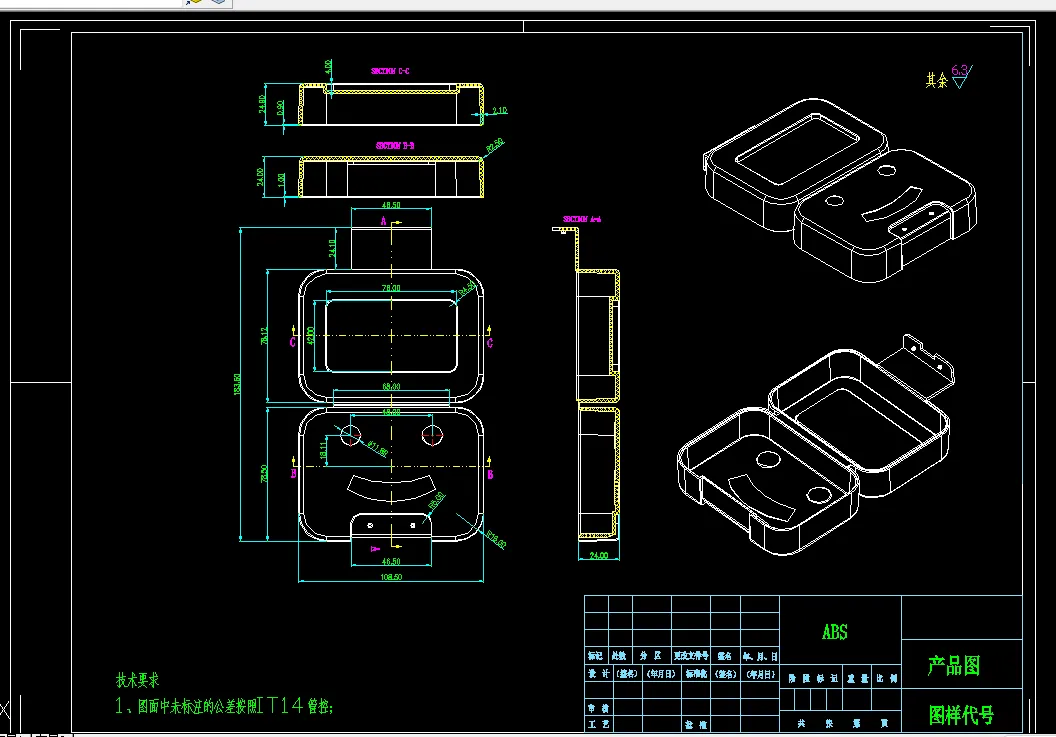 关键词: 肥皂盒;注射模具;ABS;一模两腔;侧浇口