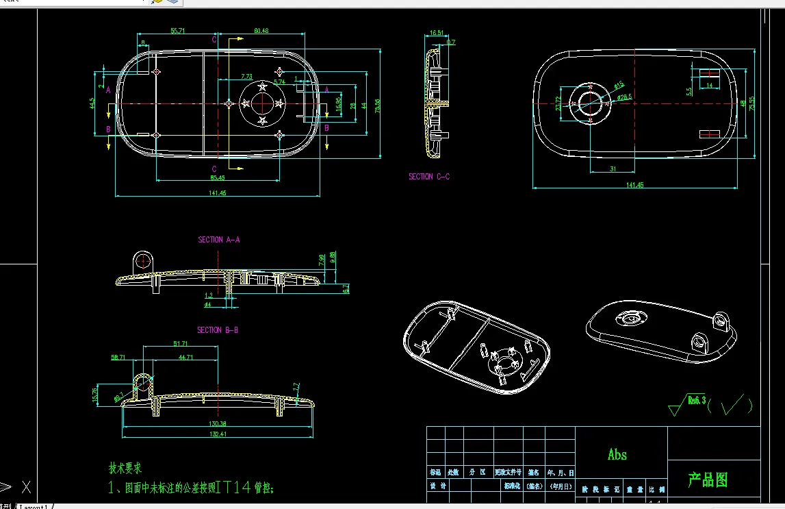 关键词:注塑成型加工 , 模具装置,设计制造,塑料,绘图