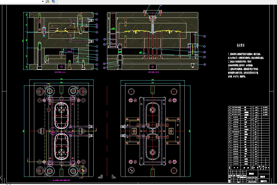 还需要对模具装置的主要机构以及主要零件进行设计选型,包括模具装置的脱模机构、导向机构以及浇筑冷却系统等。最后借助计算机二维软件绘制模具装置的总装配图以及相关零件的零件图,结合设计制造模具装置的相关流程,编写设计说明书,校核计算模具装置的相关参数,确保本文设计制造的模具装置能够有效满足实际使用需求。