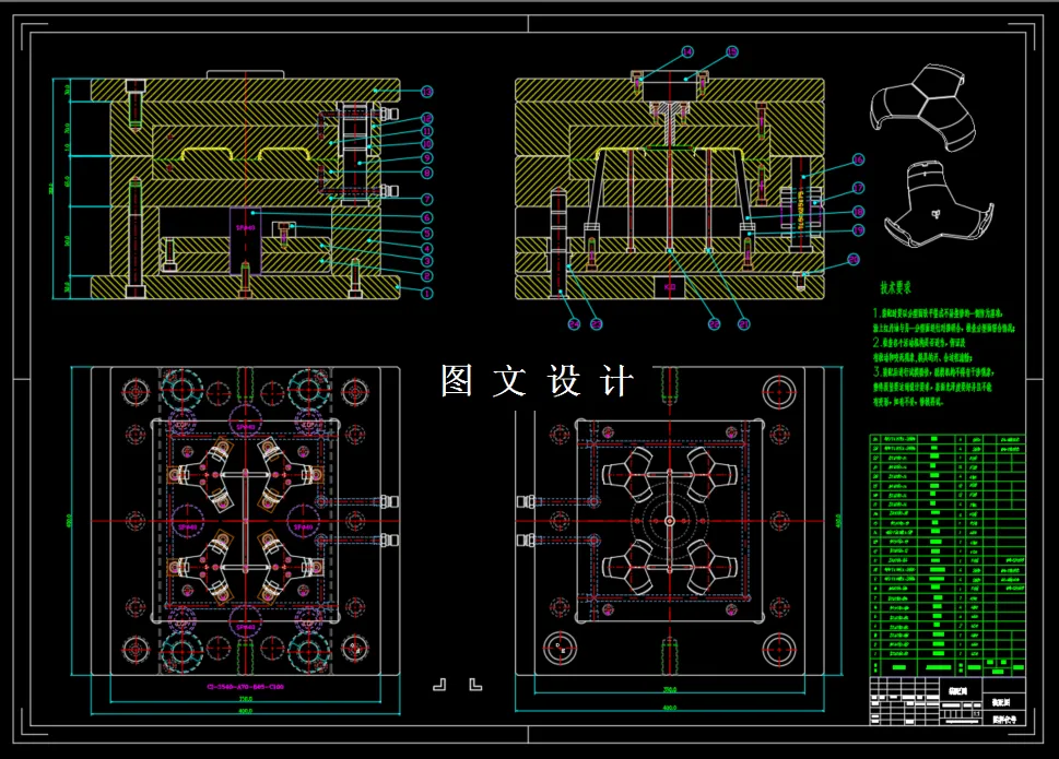 本次设计的三头剃须刀盖注塑模,该设计主要通过对塑件的结构形状及尺寸精度,成型要求来进行的注塑成型工艺的分析,并完成注射模具的设计。该设计需要通过分析的成型工艺包括:PVC塑料的成型特性,塑件的结构特点,表面粗糙度以及脱模的分析要求,以此来确定注射机的选用、型腔的数目、分型面的位置、浇注的方式、分流道的设计、脱模方式等。该次设计的难点是需要进行滑块侧向分型分析,而且是一模四腔的设计,分析确定结构。