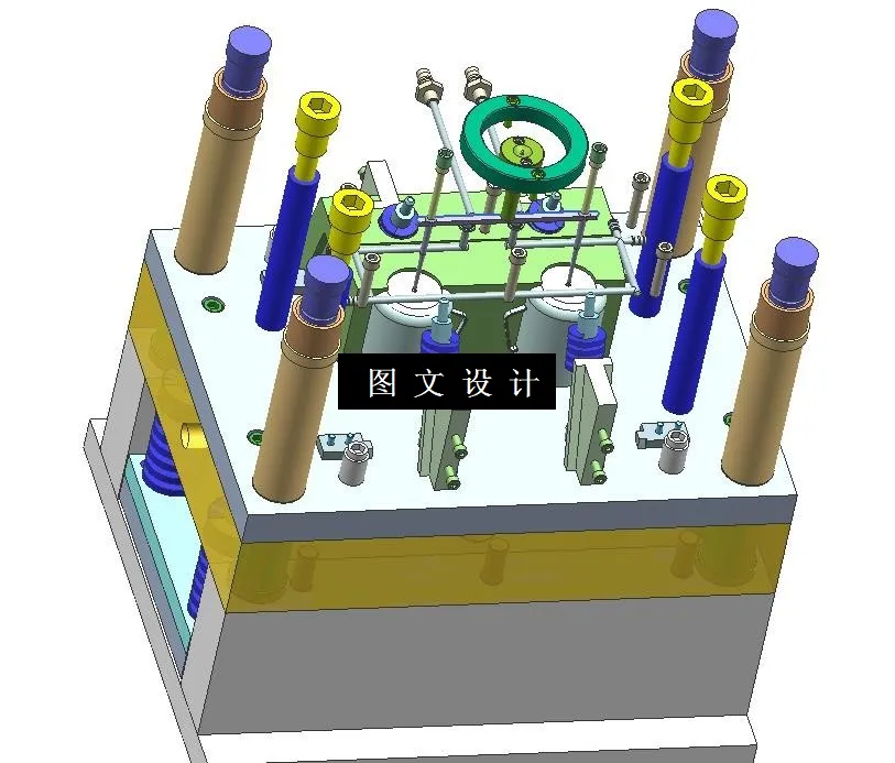 本文论述的带把水杯注塑模具采用三板式结构,即浇注系统凝料和制件在不同的分型面脱出,采用一模两腔的型腔布置,最后利用推杆将制件推出。哈弗块侧抽芯,推板推出。