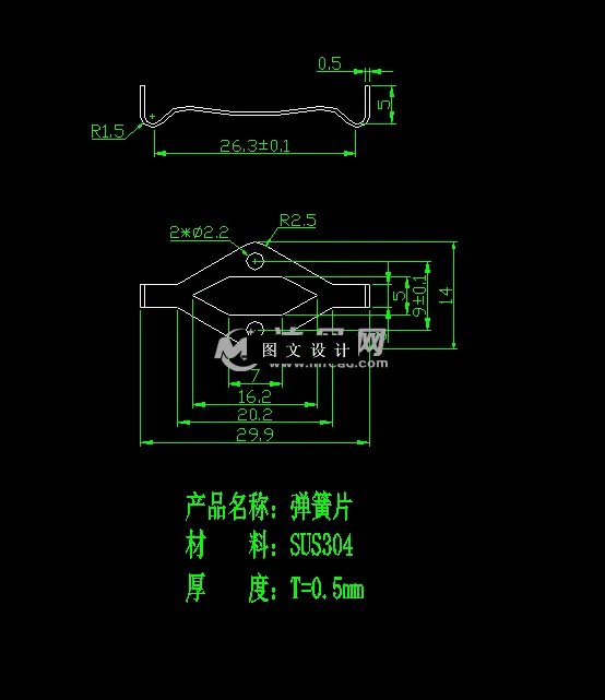 弹簧片冲压模具设计图纸,本次设计主要的加工产品是弹簧片,这种属于比较小的零部件,对于结构要求不高,属于小尺寸产品,设计的主要任务是分析零件的加工要求,并且对材料的性能做出分析,结合需要加工的工序要求,确定一个合理的模具结构,本次的零件主要是通过冲裁以及弯曲,设计出整个模具图,并且选用合理的压力机设备,对主要的零件做出计算校核,完成本次的任务要求。