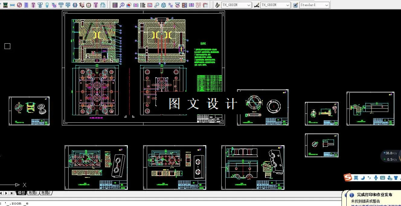 从动轮注塑模具设计图纸-一模两腔,塑件形状较简单,重量较轻,生产批量较大。所以应使用多型腔注射模具。模具采用一模二腔、平衡布置。采用一模两腔,动模滑块侧抽芯的方案进行脱模。