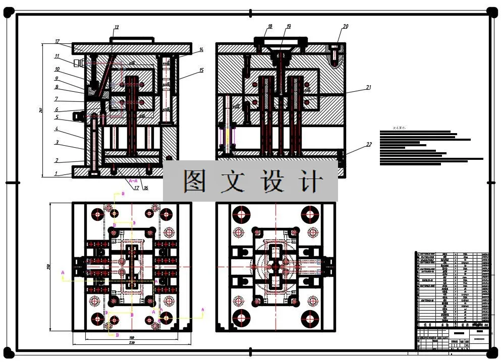 模具设计必须先规划整体的设计,此次整体结构设计的主要内容是:模具分型面的设计、流道的布置、浇口位置的选择、模具工作零件的结构设计和它们的理论计算,还有其他重要部件的设计将会在零件图中,计算的数据在零件图中也会更加具体。