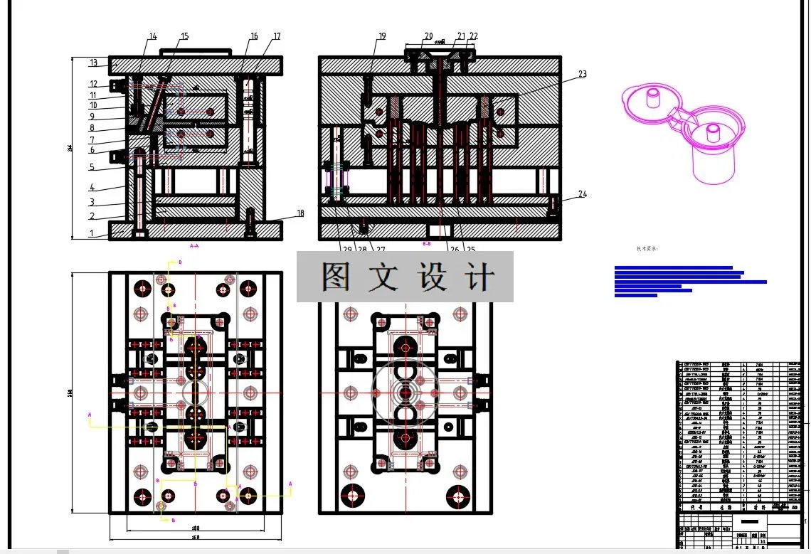 针对瓶盖的具体结构,该模具是设计重点是在侧浇注系统及分型面的设计方面。模具采用一模2腔的侧浇口进浇,采用滑块内抽。其优点在于模具结构简单,提高制造精度,节约材料,大大提高了生产效率以及经济利益。